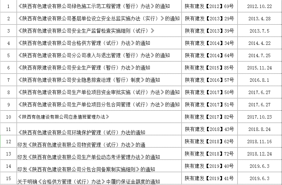 三、公司管理體系制度不斷完善健全。制定了《陜西有色建設(shè)有限公司安全生產(chǎn)管理手冊(cè)》《陜西有色建設(shè)有限公司文明施工、綠色施工管理手冊(cè)》《陜西有色建設(shè)有限公司VIS企業(yè)視覺識(shí)別系統(tǒng)》。