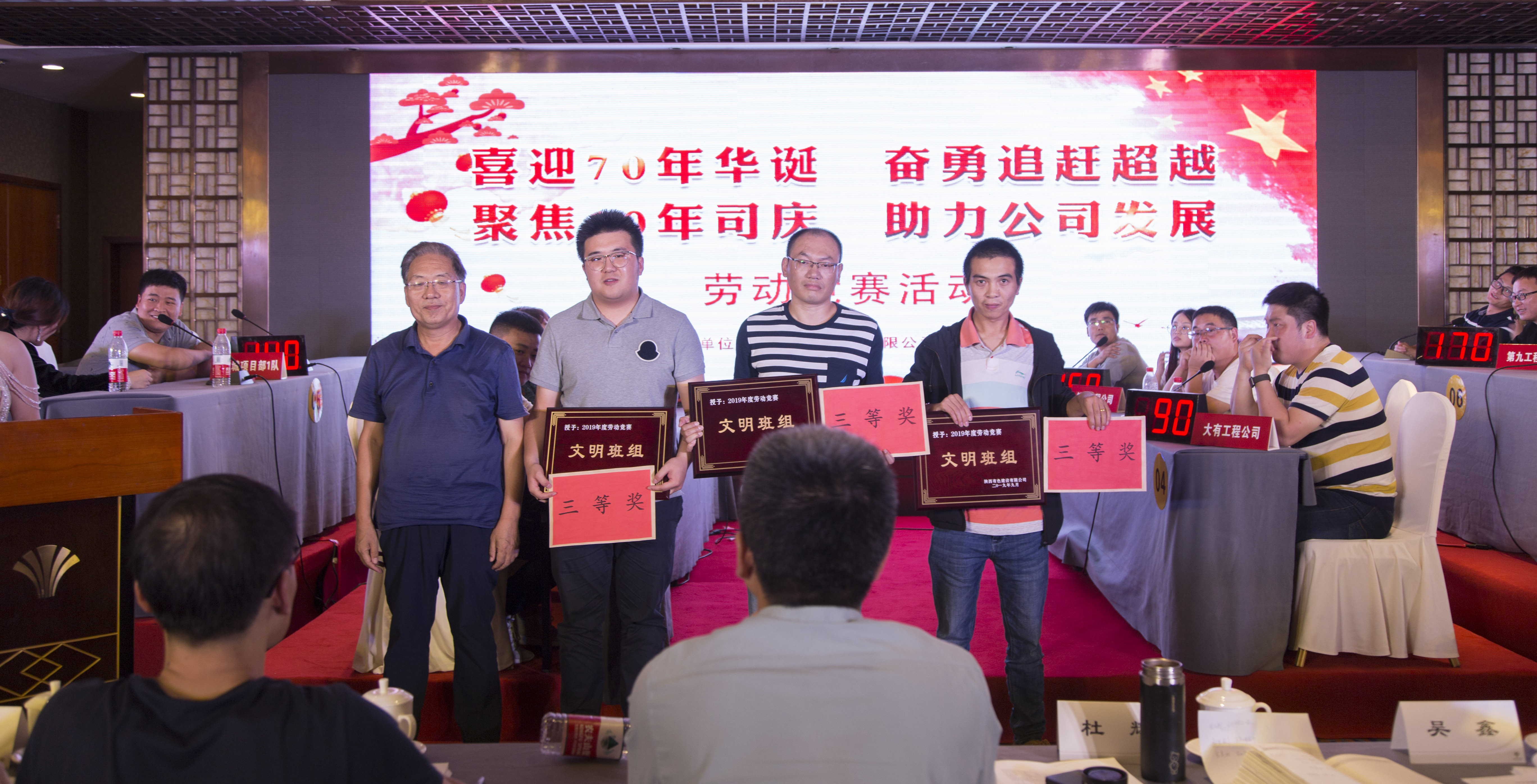 9月30日,由公司工會(huì)牽頭,科技質(zhì)量部、生產(chǎn)運(yùn)行部、項(xiàng)目管理部參與協(xié)辦的“喜迎70年華誕 奮勇追趕超越;聚焦10年司慶 助力公司發(fā)展”主題勞動(dòng)競(jìng)賽復(fù)賽及決賽在陜西世紀(jì)金源大飯店二樓舉行。由各生產(chǎn)單位組成的12支代表隊(duì),63名選手及公司各相關(guān)領(lǐng)導(dǎo)參加了活動(dòng)。