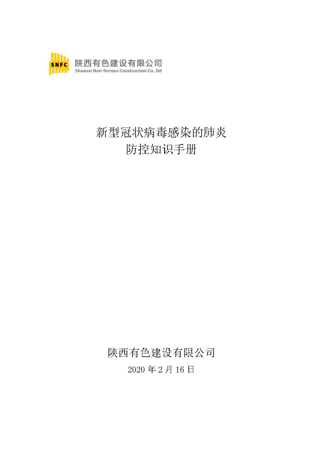 【疫情防控】新型冠狀病毒感染的肺炎防控知識手冊