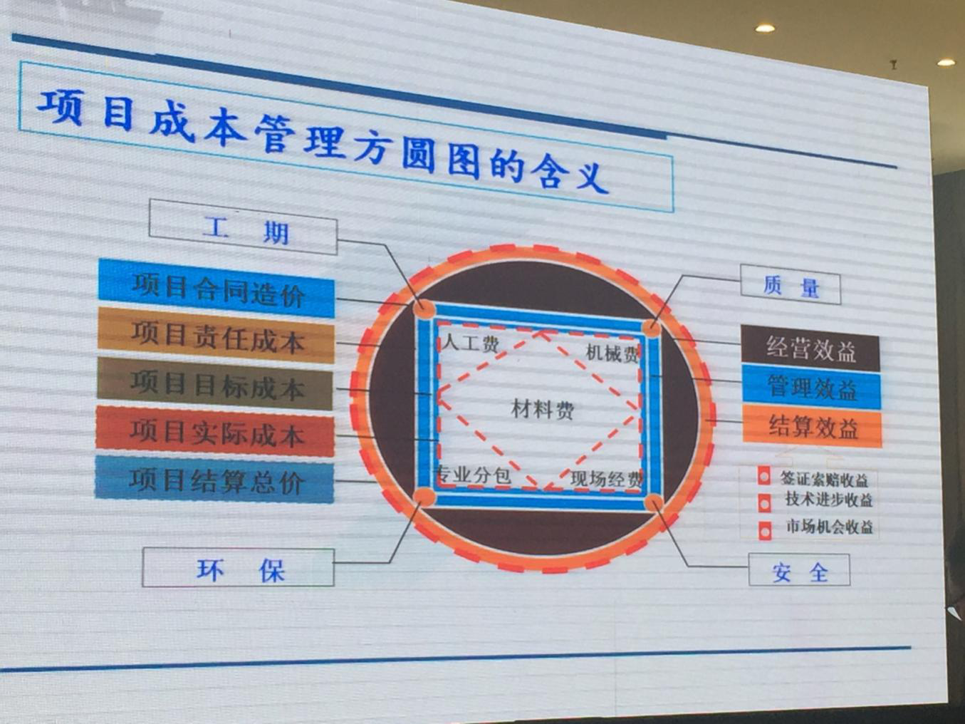 成本方圓圖中的圓形表示項目的造價,包括項目合同造價和項目結(jié)算造價。正方形表示項目的各類成本,包括項目責(zé)任成本、項目目標(biāo)成本和項目實際成本。圓形的面積減去正方形的面積就是效益(圖中咖色部分)。當(dāng)圖中圓形的半徑擴大時則表示項目的結(jié)算造價在合同造價基礎(chǔ)上提高,當(dāng)正方形的邊長在科學(xué)有效的管理下縮短,則項目成本降低。當(dāng)兩者的面積差(圖中咖色部分)變大時,效益則提高。所以,在項目管理過程中要不斷的尋找拓圓的方法和縮方的途徑。只有圓的有理、方的有據(jù),那效益提高就勢在必得。