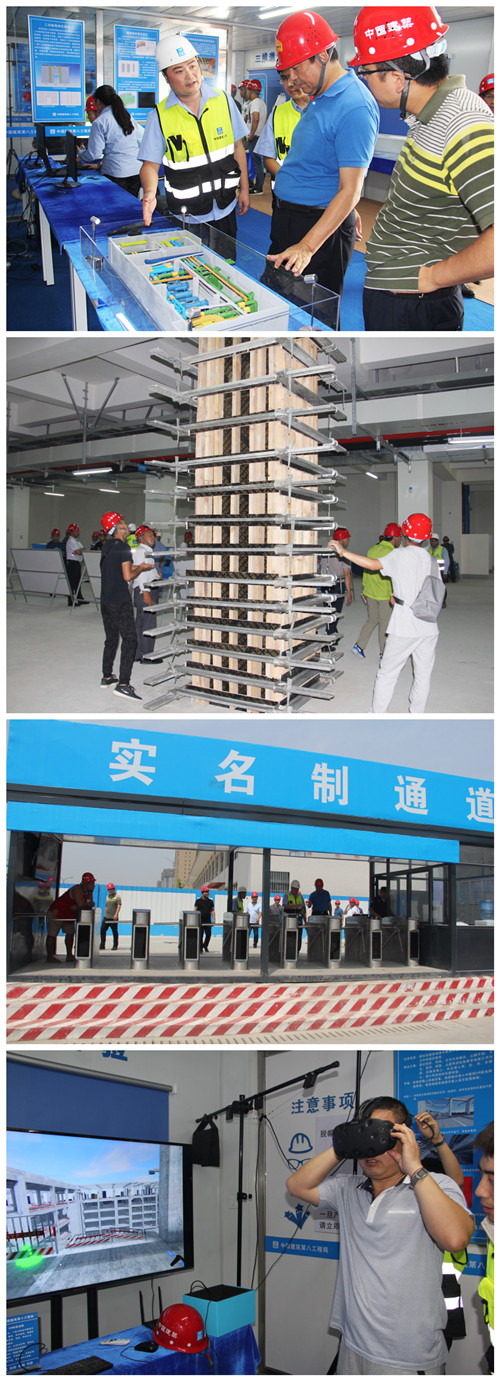 觀摩人員先后參觀了辦公生活區(qū)、安全體驗(yàn)區(qū)、“互聯(lián)網(wǎng)+”體驗(yàn)中心、BIM+VR+3D打印大數(shù)據(jù)中心和生產(chǎn)區(qū)。其中:云筑網(wǎng)建筑工人實(shí)名制管理平臺(tái)、“互聯(lián)網(wǎng)+質(zhì)量/安全/物資”展示、BIM深化設(shè)計(jì)、VR安全教育體驗(yàn)、3D打印建筑模型、AR圖紙識(shí)別技術(shù)、方圓扣自鎖模板、鋼筋綁扎定位、定型化工具式通道等施工亮點(diǎn)引人關(guān)注。