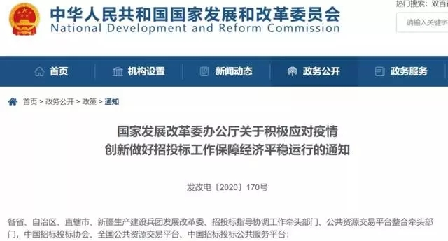 2月8日,國家發(fā)改委辦公廳發(fā)布《關(guān)于積極應(yīng)對疫情創(chuàng)新做好招投標(biāo)工作保障經(jīng)濟(jì)平穩(wěn)運(yùn)行的通知》,對有序開展招投標(biāo)等公共資源交易活動、保障經(jīng)濟(jì)平穩(wěn)運(yùn)行提出13條要求。
